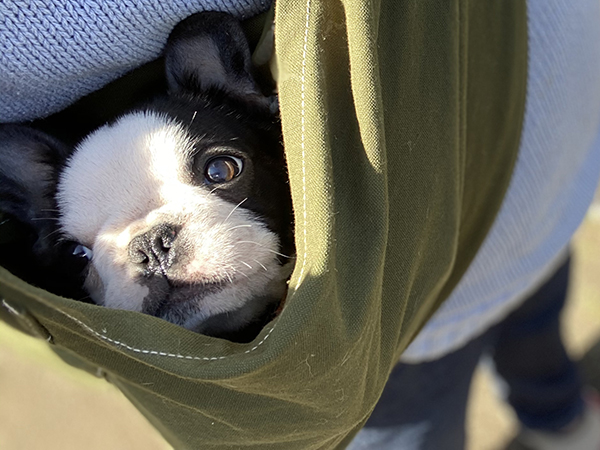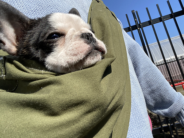 もう随分しっかり歩けるようになったのですが、いまだ抱っこ犬ライフを時々しています。